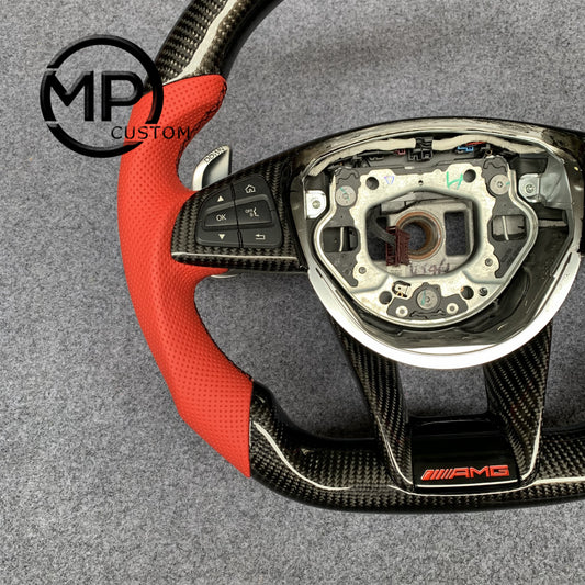 MPCUSTOM Fit For Mercedes Benz AMG 808 W205 GLA45 S63 C43 carbon fiber steering wheel red perforated leather