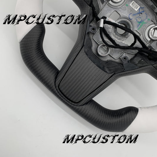 Mpcustom for Tesla model 3 Y carbon fiber steering wheel white perforated leather and white stitching