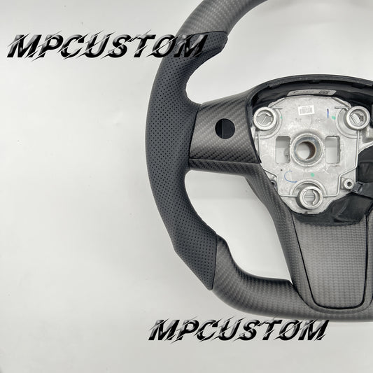 Mpcustom for Tesla model 3 Y carbon fiber steering wheel perforated leather and flat bottom
