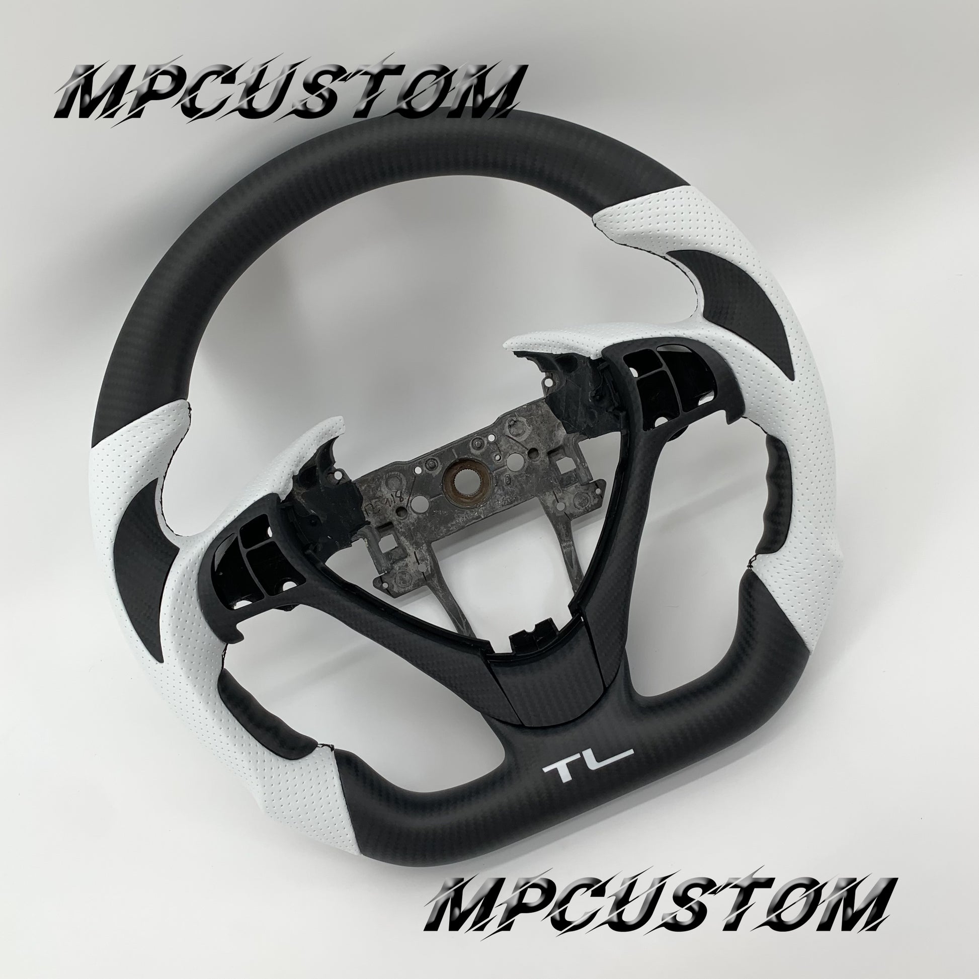 Mpcustom Acura TL 2009-2014 carbon fiber steering wheel white perforated leather