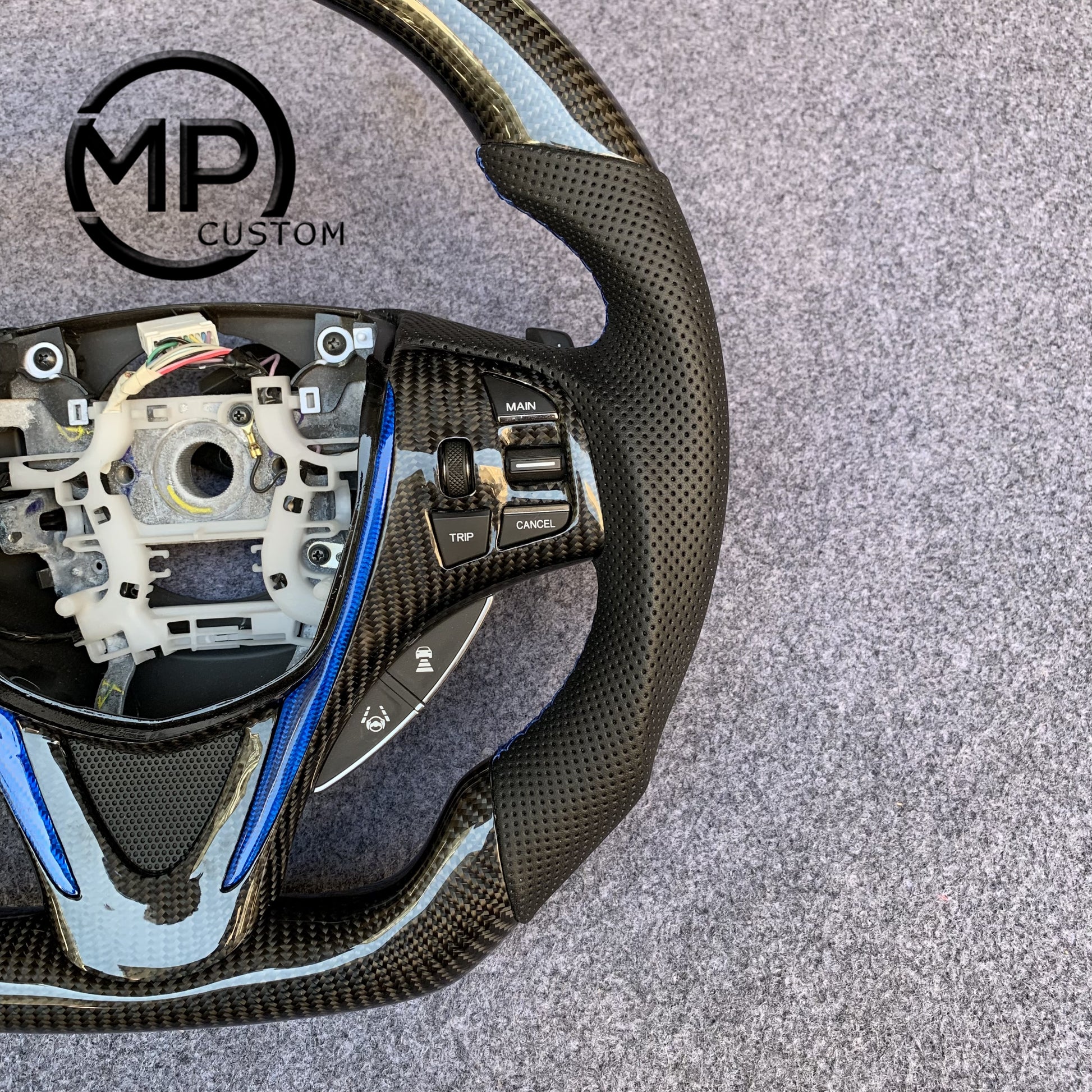 MPCUSTOM Fit For Acura MDX 2018-2022/TLX TYPE S 2015-2018 carbon fiber steering wheel black perforated leather blue center line