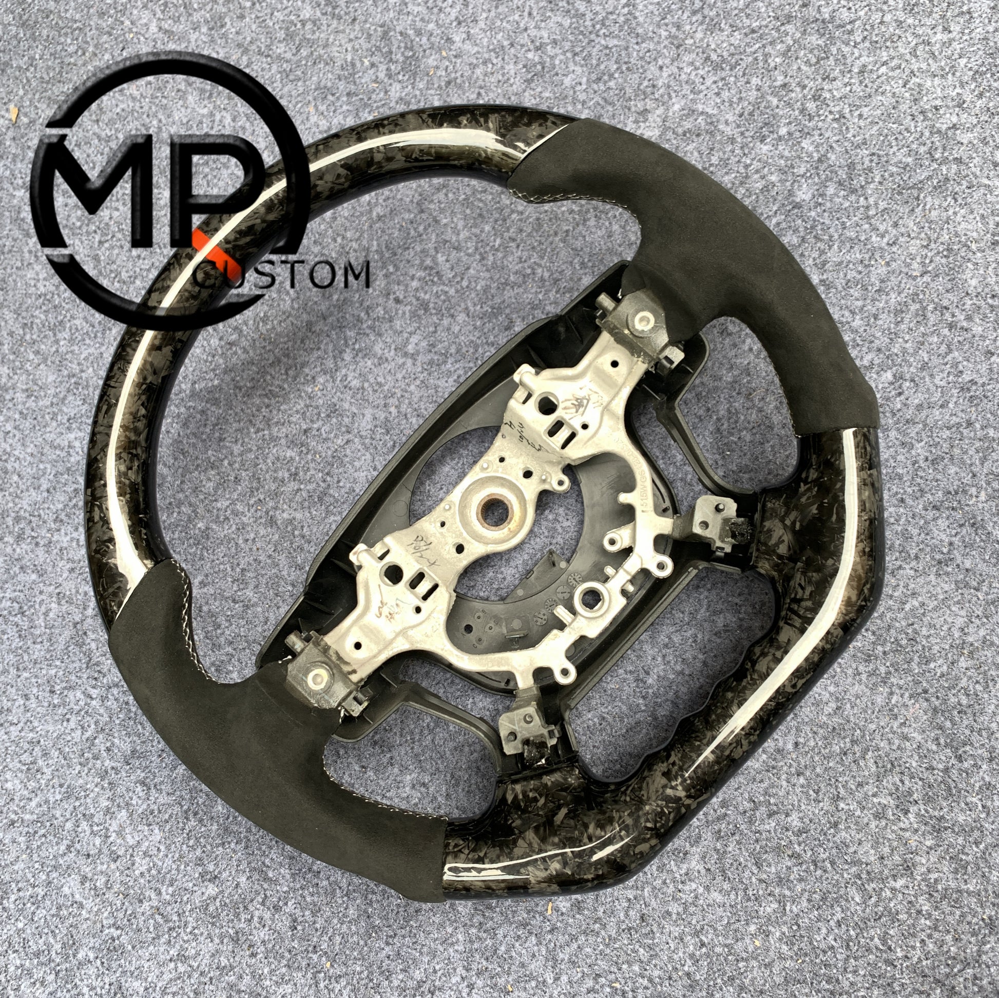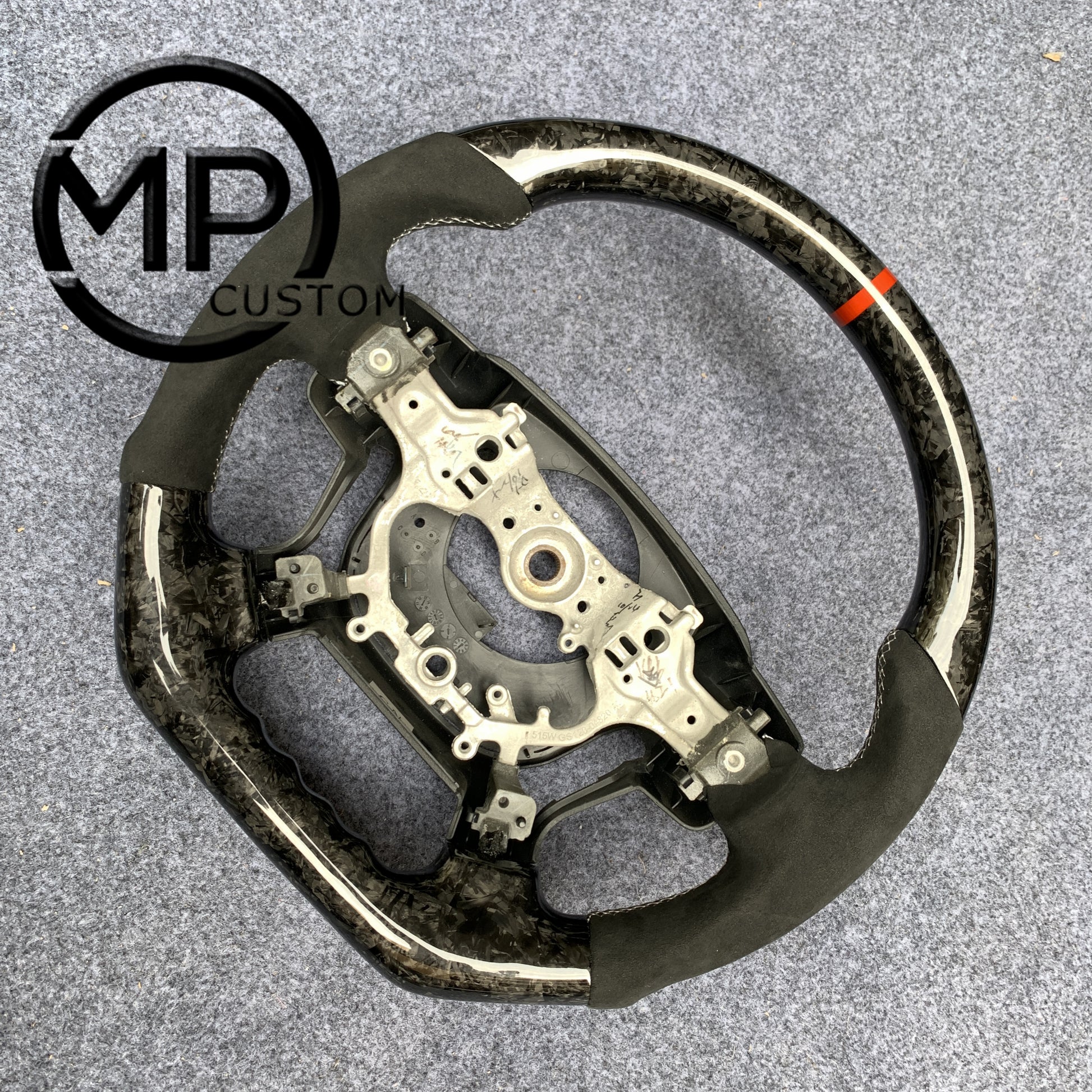 MPCUSTOM Fit For 2012-14CamryHighlanderACV50 carbon fiber steering wheel black perforated leather red center line