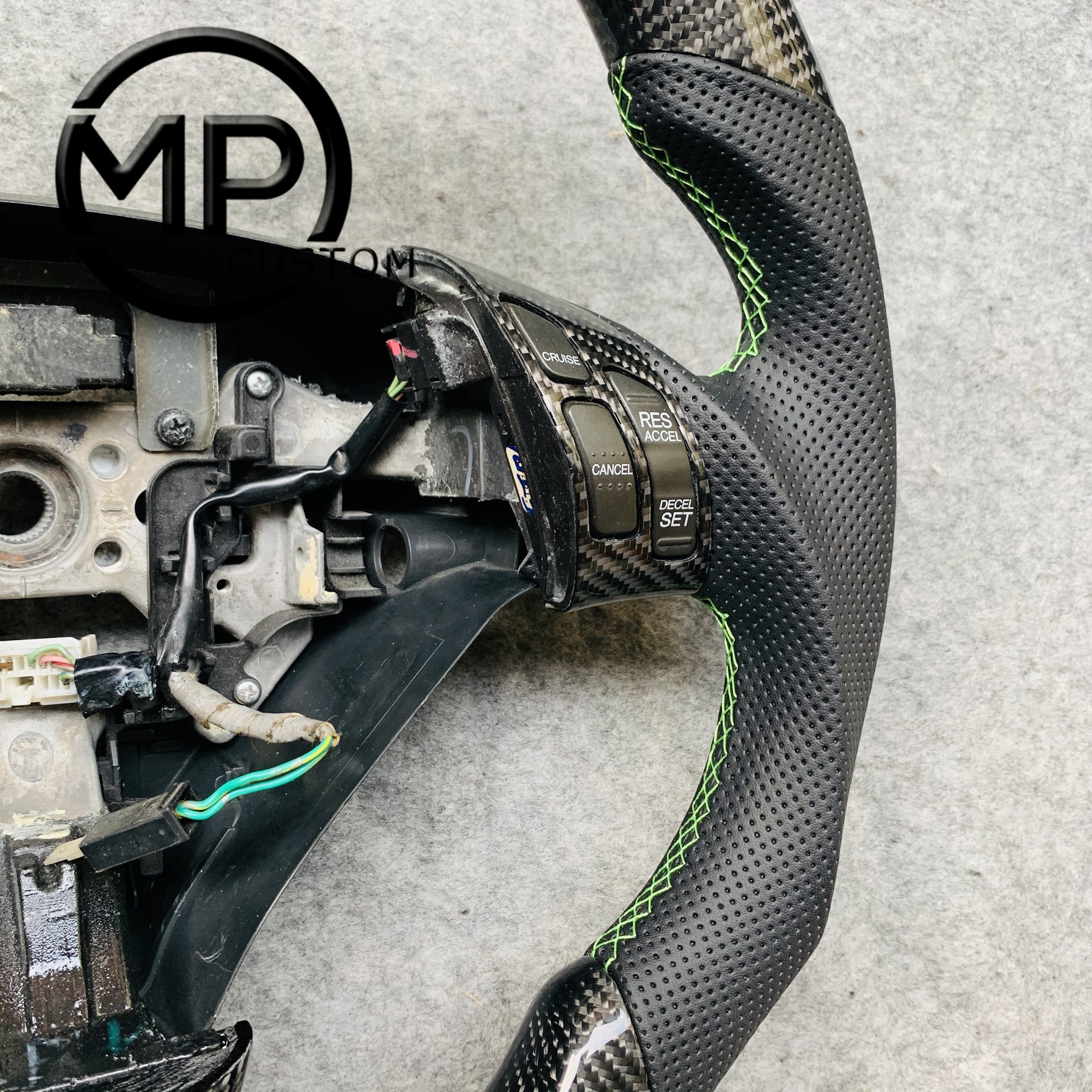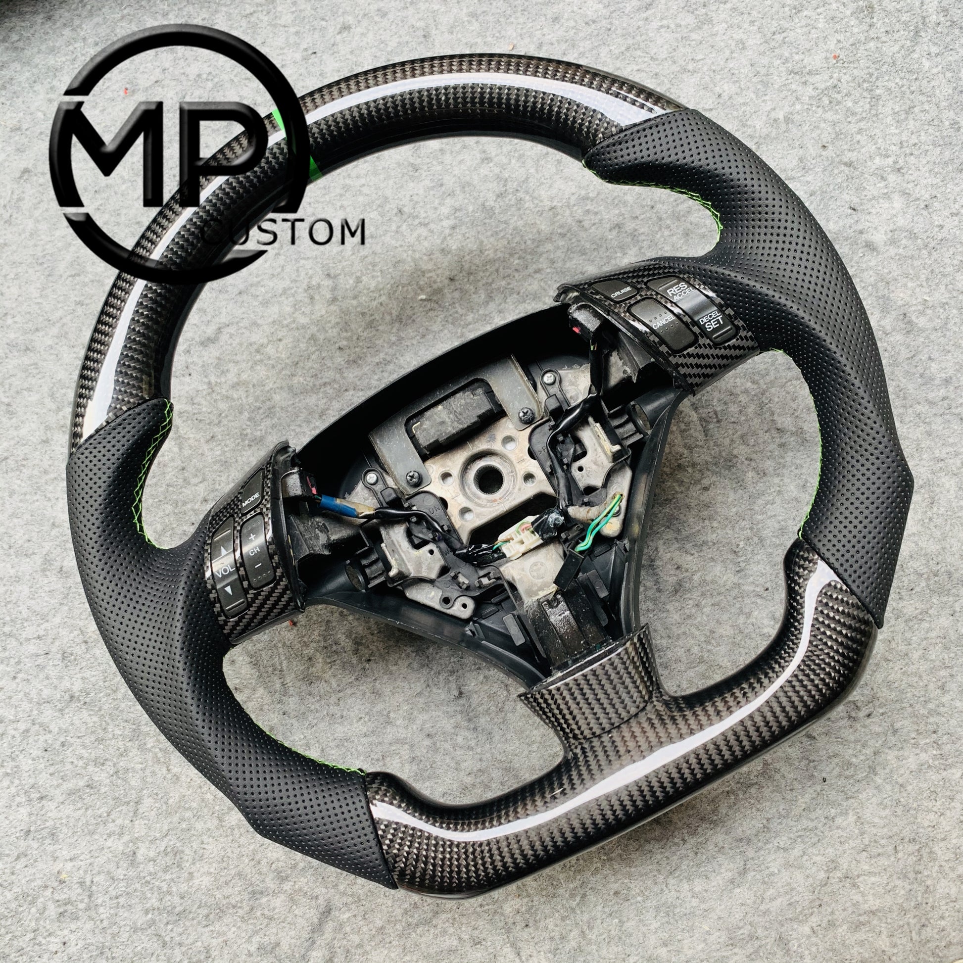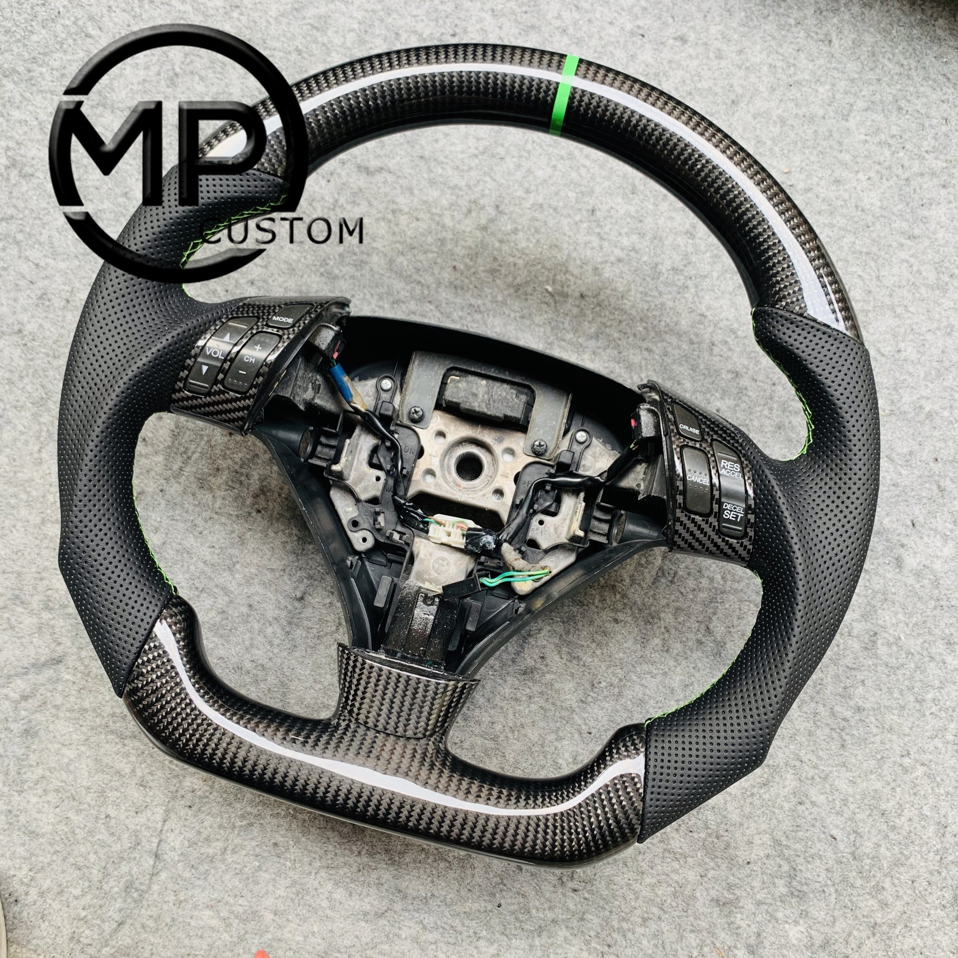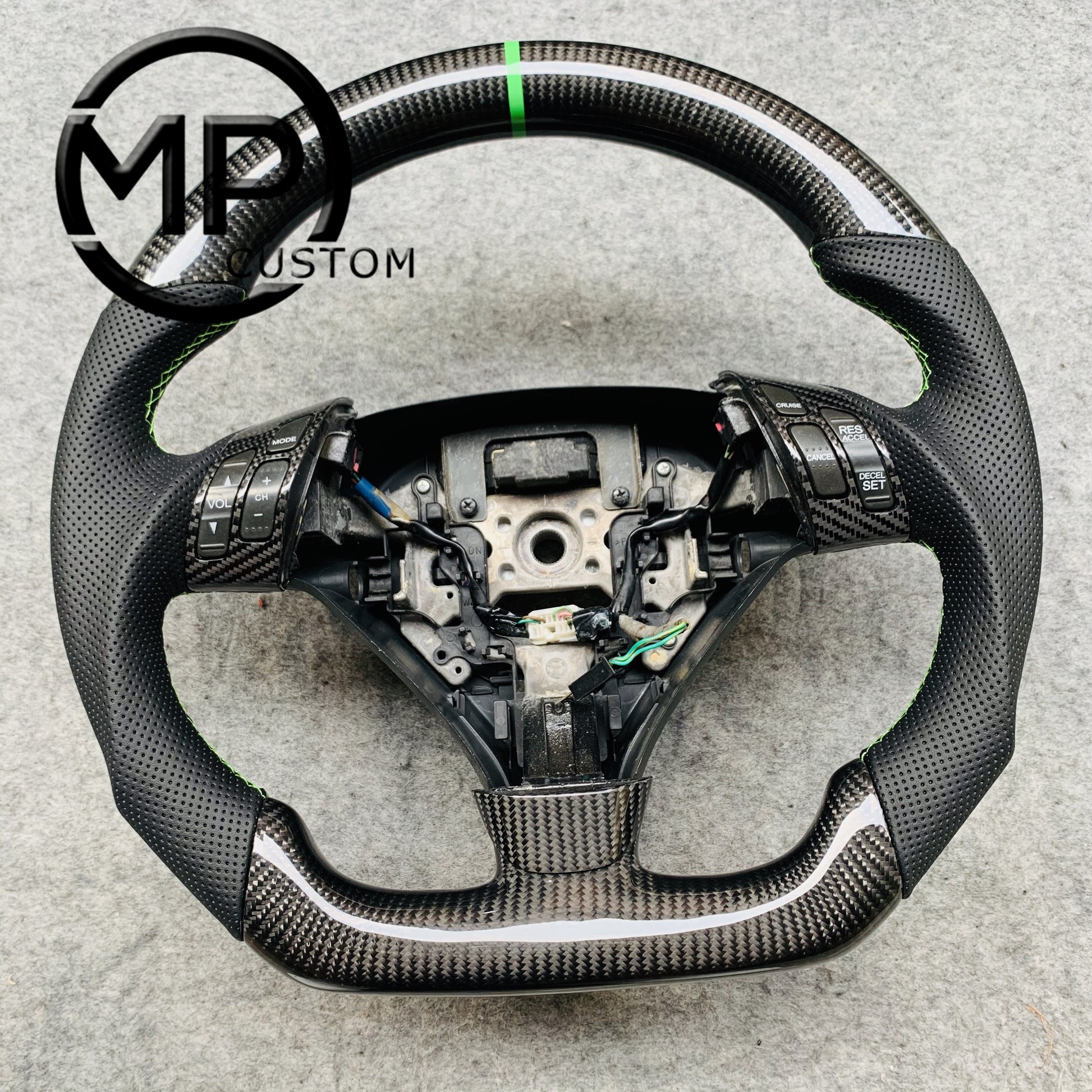 MPCUSTOM Fit For Honda 7th gen Accord Sedan TESTED LX 2003-2007/Inspire/Accord UC1 UC3 CM5 CM6 carbon fiber steering wheel black perforated leather green center line