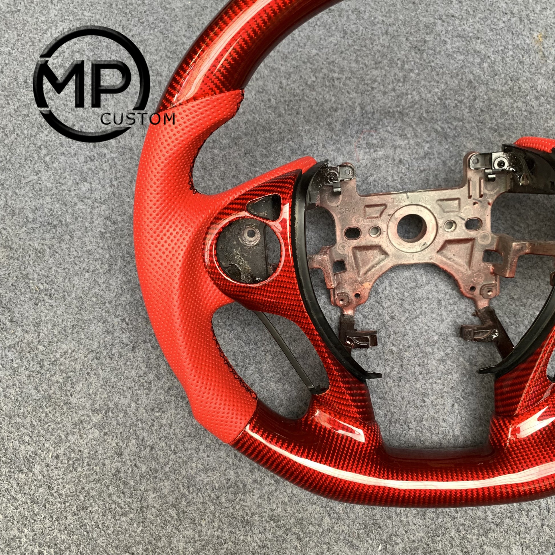 MPCUSTOM Fit For Honda 9th gen Accord SPORT 4 DOOR SEDAN 2013-2017/Crosstour 2013-2015/Ridgeline 2017-2020 gloss red carbon fiber steering wheel red perforated leather blue center line