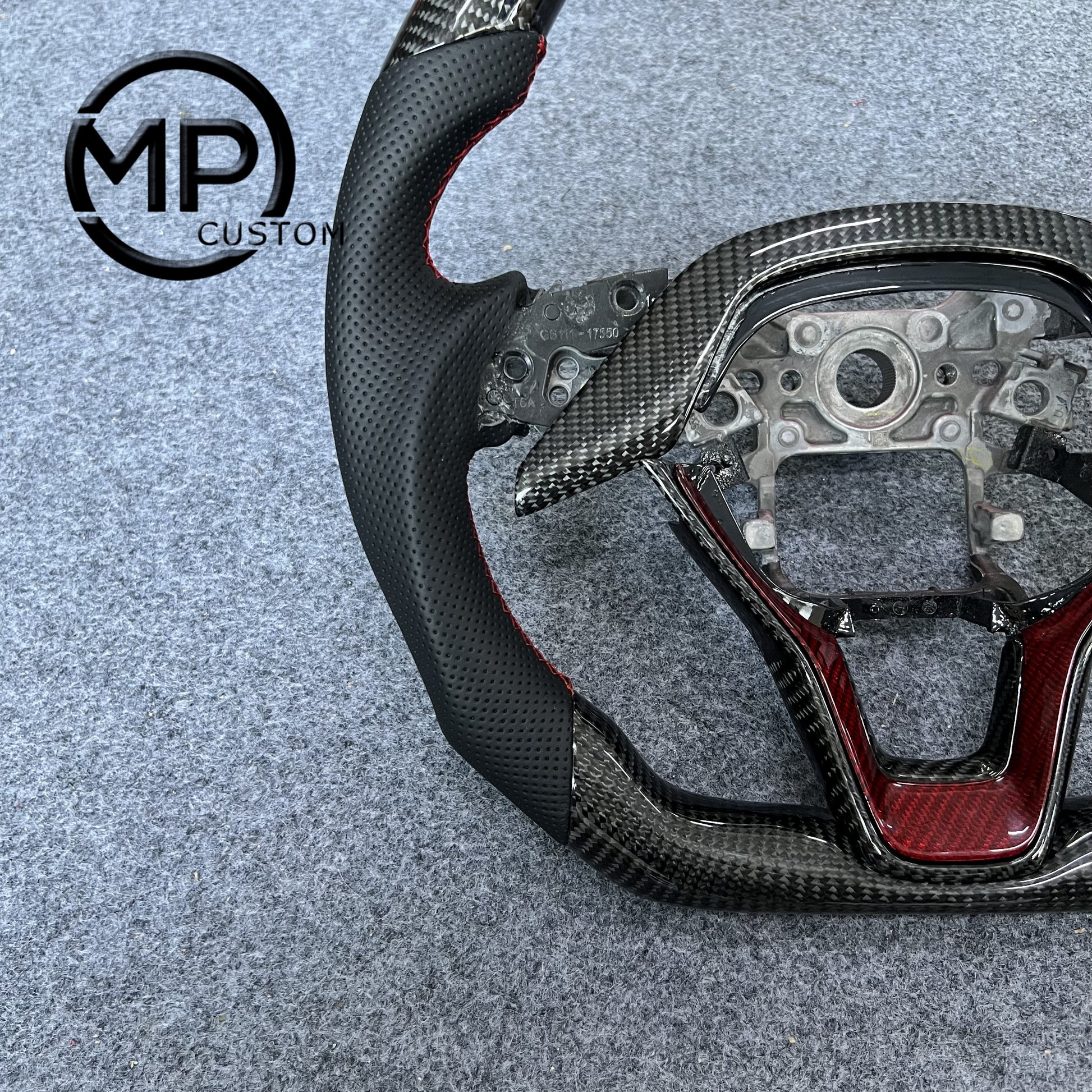 MPCUSTOM Fit For Honda 10th gen Accord/EXL EX LX 2018-2022/Insight 2019-2021 carbon fiber steering wheel black perforated leather red center line