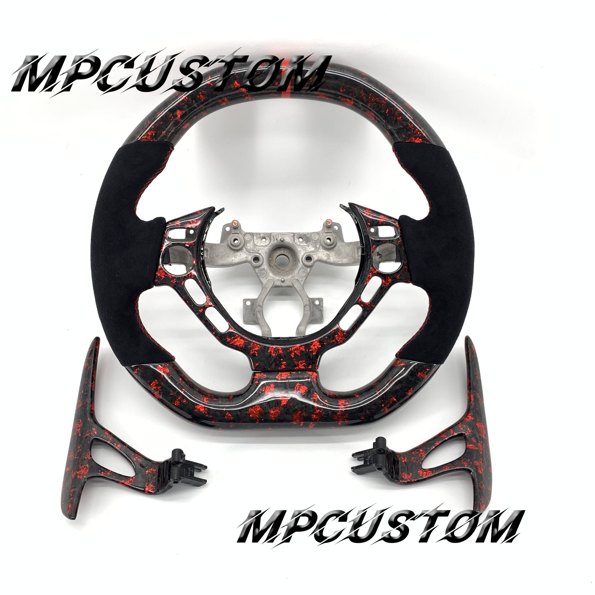 Mpcustom for Nissan GTR R35 2009-2016 carbon fiber steering wheel red stripe line and flat top
