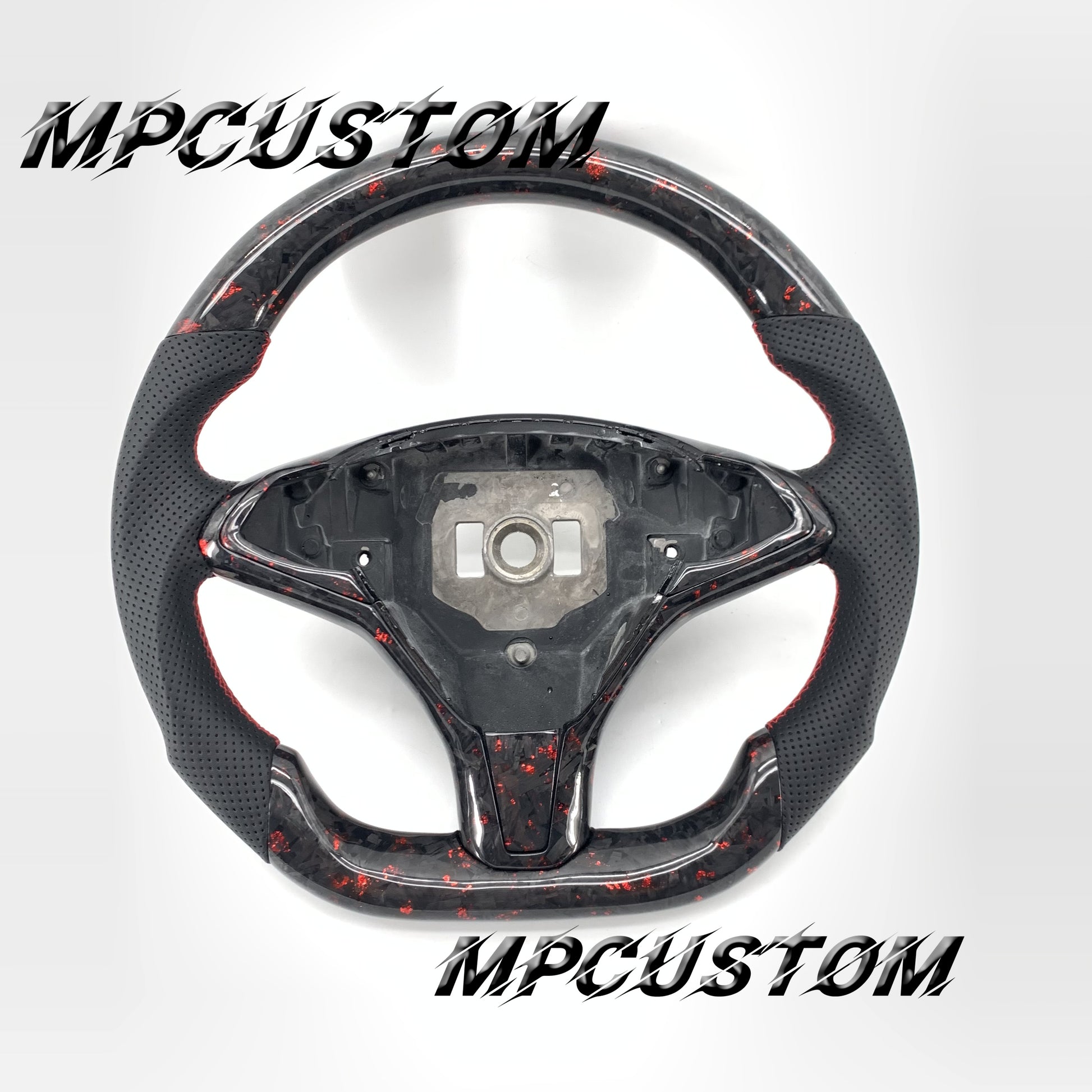 Mpcustom for Tesla model S X carbon fiber steering wheel gloss and red stitching