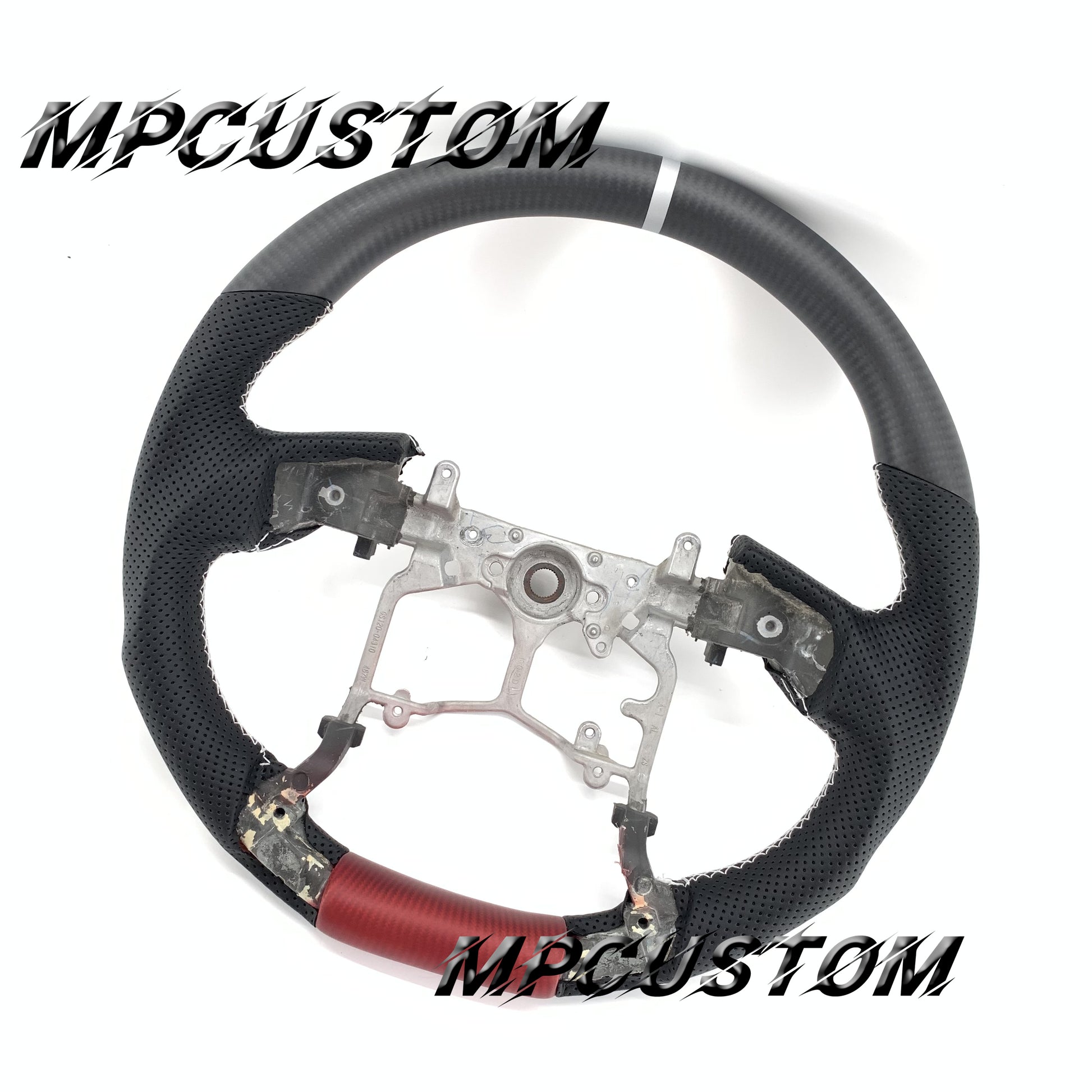 Mpcustom for Toyota Tundra 2014-2020 carbon fiber steering wheel white stripe line and white stitching